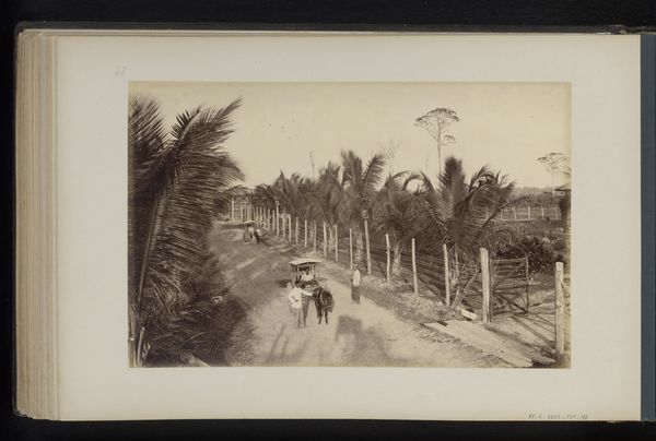 This photograph, by Heinrich Ernst & Co, captures a constructed road on the Boeloe Tjina plantation in Sumatra. It invites us to consider the intertwined histories of colonialism, labor, and landscape transformation. The image presents a stark view of a plantation, likely taken during the Dutch colonial period. On first glance it appears to simply document the infrastructure of colonial enterprise, yet a closer look reveals the human cost embedded in this landscape. The road, a symbol of progress for some, was built through the forced labor of others, forever altering the natural environment. The presence of workers in the distance reminds us of the individuals who toiled under harsh conditions. This photograph not only serves as a historical document, but also a call to reflect on the complex legacies of colonialism and its lasting impact on identity, labor, and the environment.