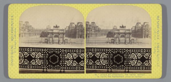 Curator: Ah, a lovely early photograph—specifically, an albumen print titled "Gezicht op het Palais des Tuileries te Parijs" (View of the Tuileries Palace in Paris), taken before 1871 by Ernest Eléonor Pierre Lamy. Editor: There's a hushed quality about it, almost like viewing a stage set. Everything's perfectly centered, symmetrical and subdued. Makes me think of silent movies, doesn't it? Curator: The composition is indeed very deliberate. You have the formal gardens reflected in the still water, amplifying the building's neoclassical design. This type of photograph served both artistic and documentary purposes. The symmetry certainly draws my eye down into the pool... Editor: True! It's like the photograph is creating a parallel universe. Though everything in me just wants to see people bustling about. Where's the energy of the city, you know? Curator: That energy, of course, would have been incredibly difficult to capture with the photographic technology of the time. Long exposure times favored stillness. And Lamy was really playing with a structural dance here. Observe how the horizontal lines of the palace are mirrored in the reflecting pool, with the fountain offering a pivotal point—creating visual rhythm... Editor: A rhythm I almost missed. It makes the grandness… peaceful. But, wow, thinking that this Palais was burned to the ground shortly after this photograph was taken really adds another layer. Knowing its about to disappear forever gives a sort of delicate touch, and its so interesting that Lamy created this photograph "before 1871"... such as a fascinating historical reference! Curator: Precisely. The photograph becomes a poignant memento. By viewing this serene composition through our knowledge of history makes it almost haunting, adding to a sense of something beautiful about to disappear. Editor: So, a double image: beauty, and impending loss, caught in a moment, developed for future eyes. Amazing. Curator: Indeed! A confluence of artistic intent, technological capability, and historical context, offering us today a lens into a vanished Parisian scene.
