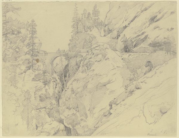 Pierre Puvis de Chavannes created this drawing, Avalanche in an Alpine Landscape, using graphite on paper. The composition divides into distinct zones of depth, from the stark foreground to the distant, faintly rendered mountains. The avalanche itself cascades diagonally, a powerful, textured mass dominating the scene. Look at how the hatching marks create tonal variations that suggest both light and volume. The artist uses short, broken lines for the trees and mountains, and longer, more directional strokes to define the avalanche's movement. This contrast in linework guides our eye through the landscape. In the late 19th century, artists were increasingly interested in depicting natural phenomena with scientific accuracy, while still conveying emotional impact. Chavannes captures this tension by combining precise detail with a sense of overwhelming force, reflecting broader cultural anxieties about nature's power and unpredictability. Notice how the seemingly simple graphite lines construct not just an image, but a complex representation of nature's dynamic and sometimes destructive forces.