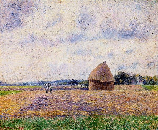 "Haystacks at Giverny" is a landscape painting by Claude Monet, an artist deeply embedded in the shifting social landscapes of late 19th-century France. Monet lived through a period marked by rapid industrialization and urbanization, witnessing a transformation in the traditional agricultural way of life. The haystacks, massive and golden, become symbols that immortalize labor and the seasonal rhythms of rural existence. In this light, the painting transcends mere aesthetics. Instead it provides a commentary on gendered spaces and labor, suggesting a certain nostalgia for the agrarian past. The haystacks serve as a point of connection to the working class, especially women, who were often responsible for field work. It subtly asks us to confront the human element that is always part of our environment. Monet once said, "I want to paint the way a bird sings". These haystacks invite us to reflect on the interconnectedness between humans, labor, and landscape, and the emotional narratives embedded in everyday life.