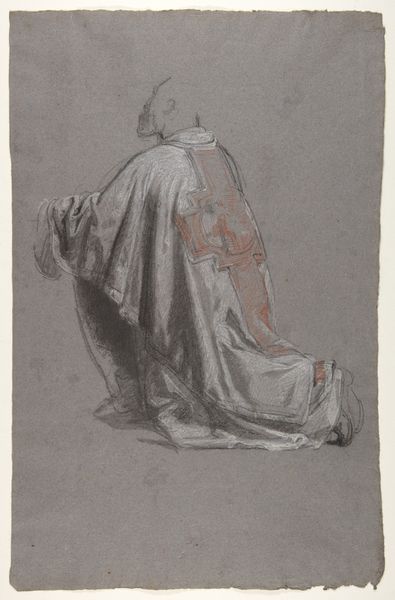 Editor: Here we have Giovanni Battista Tiepolo's "Standing Woman, Turned to the Left," an ink drawing from around 1739 to 1760. The figure almost seems to dissolve into the paper. What elements of its formal construction stand out to you? Curator: Note the economy of line, and how Tiepolo modulates its weight. It is a study in tonal variation within a monochrome palette, achieving volume with minimal cross-hatching. The subject matter is secondary to the formal investigations at play. Editor: So you're saying it's less about *who* she is and more about *how* she's depicted? Curator: Precisely. Observe the positioning of the figure within the frame. She is off-center, directing our focus on the negative space which then becomes dynamic. What effect does this placement have on the viewer? Editor: I see… it does create a sense of imbalance and tension, like she's about to move or has just been caught in motion. Is this a typical approach for Tiepolo? Curator: Indeed, he was celebrated for this skillful application of the Baroque aesthetic of dynamism, a contrast to the preceding eras. Further consider how the drawing embodies classical artistic theories relating to chiaroscuro. Editor: Right, the way light and shadow create form. Looking closely now, I can see how Tiepolo manipulates that principle in what seems like an effortless sketch. Curator: It showcases Tiepolo’s technical skill and artistic understanding of light, line and space to generate pictorial depth. An admirable example of visual rhetoric, don't you think? Editor: I think I see how form dictates function. Thank you for walking me through this artwork and encouraging closer inspection.