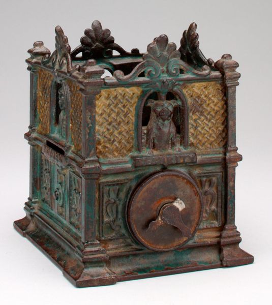This "Hutch still bank", was made of wood, by an anonymous artist at an unknown date. It is currently located at the Minneapolis Institute of Art. The whole piece is so tactile and has a great patina, but the first thing that grabs me is the faux lattice-work on the cabinet doors. These decorative shapes remind me of the art of someone like Paul Klee, in their construction of geometric forms. It's like the maker was trying to create a fancy facade, but with basic materials and techniques. The flags painted on the glass behind the lattice, are really charming and they show a playful disregard for the rules of perspective. I can imagine the artist carefully carving each element, probably without formal training, but with a clear vision. This feels like folk art, in the best way. The use of thin paint layers, mostly in the brown and red range, creates a warmth. But it's the little imperfections and asymmetries, that give the object its real character. It's like a conversation between the maker and the materials, that embraces accident and improvisation.