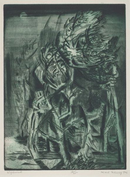 André Racz created this intaglio print, "Perseus Beheading Medusa, IV," in 1945. Racz’s surrealist take on the classical myth invites us to consider the politics of imagery and the social conditions of artistic production during and after World War II. The mid-20th century was a time of immense violence and social upheaval, and many artists turned to mythology as a way to grapple with the anxieties of the modern world. The story of Perseus and Medusa can be seen as a metaphor for the struggle between good and evil, order and chaos, or reason and irrationality. How does Racz's abstraction comment on existing social structures, or the institutions of art? Historians consult a wide range of resources to understand the place of art within its social and institutional contexts.