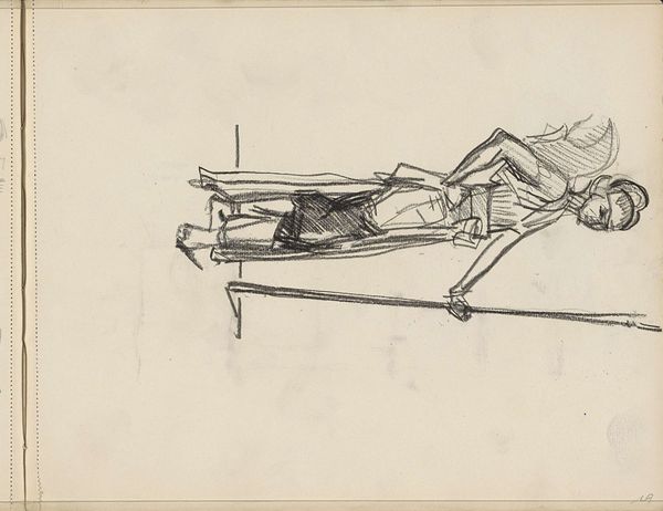 Isaac Israels made this drawing of a standing woman with crossed legs with pencil on paper, and it's now here at the Rijksmuseum. You know, it's funny how a few quick lines can suggest so much. Israels really gets down to basics here, capturing just the essence of the figure. Look at those bold, confident strokes—they’re not trying to be perfect, just present. It’s like he’s thinking aloud with his pencil, letting the marks flow and find their own way. I am drawn to the areas where the lines are almost scribbled and reworked. It makes me think of the artist circling around his subject, finding it in the fog. You can sense the energy of the moment, like he’s chasing after a fleeting impression. And it makes you wonder: What else was going on in the studio when Israels made this sketch? Was he listening to music? Was the model chatting away? It is a very modern and loose drawing, which in places is reminiscent of some of Degas' work. Ultimately, art is about conversations and the ongoing exchange of ideas. There are no fixed meanings, just possibilities.
