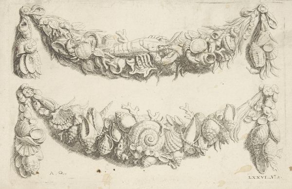 Editor: Here we have Jeremias Wachsmuth’s "Ornamental Jugs with snake," created sometime between 1721 and 1756. It's an engraving. The level of detail is impressive, and the overall effect is incredibly ornate, almost overwhelming. What stands out to you, and how do you interpret it? Curator: These aren’t just ornamental jugs; they're powerful displays of status. Think about the baroque style itself, its grandiosity and elaborate ornamentation – it's all about projecting power and wealth. These prints, multiplied and circulated, served as blueprints, shaping taste and influencing the design of actual objects. What do you notice about the motifs used? Editor: I see a lot of shells and foliage. Curator: Exactly! Seashells, particularly in this era, were highly prized collector's items, seen as emblems of luxury and exoticism. Incorporating them into designs, like on these jugs, directly associated the owner with those values. And where might these designs have circulated? Editor: Perhaps among wealthy families who wanted the latest designs for their homes? Curator: Precisely! The politics of imagery in the Baroque period went far beyond mere decoration. Objects like these, replicated via engravings and displayed in affluent homes, communicated cultural sophistication, wealth, and adherence to the prevailing sociopolitical order. The artist subtly enforced those values, too, don't you think? Editor: That makes so much sense. I didn’t consider how an engraving like this would have influenced tastes beyond the objects themselves. It's fascinating to see how art functions as part of a broader social and political context. Curator: It certainly gives one a lot to think about, regarding art’s reach and power!