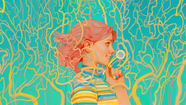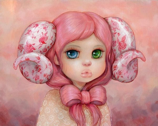 Soey Milk’s "Pink Panda" is a modern painting that radiates dreaminess. The surface is built up with layers, creating a soft-focus effect, like a memory or a sweet daydream. The colors are muted, leaning into pastel shades, and the pink of the hair is echoed in the blush of her cheeks and the pom-poms in her hair. The texture is smooth, but there are visible brushstrokes, especially in the background, reminding you of the artist's hand. Check out the way she’s holding her hands, framing her face. It’s a classic pose, but Milk adds a playful twist with the whimsical accessories and the subtle, knowing expression. This piece reminds me a bit of early Wayne Thiebaud, with its emphasis on color and playful subject matter, but Milk brings a contemporary sensibility to it. It’s a reminder that art is always in conversation with the past.