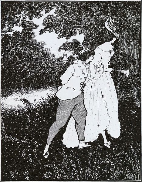 Curator: Claude Monet's "Lunch on the Grass", from 1865, an oil painting with obvious plein-air touches. The setting seems intimate. What strikes you initially? Editor: It’s vibrant. There's such an odd juxtaposition in it. I am struck with how blocky, abstract almost, Monet’s dabs of color create the textures. Not the smooth, polite countryside you might expect. There's an intriguing mood about it. Curator: Intriguing indeed! I agree it has this bold fragmentation. Focusing on the composition, the strong horizontals—the layers of dresses against the vertical lines of the trees—create a grid structure. How do you interpret that tension? Editor: You know, grids usually speak to control, imposing order, and even boundaries. The layers of dresses seem more like barriers or veils. But, there are still brushstrokes pushing against those barriers as well. The grid, in essence, is struggling. So fascinating that he can achieve all that using Impressionist painterly style. Curator: It is quite thought-provoking! It challenges conventions on various levels; compositionally but, certainly the subject matter is also challenging the expected. Editor: Oh, how so? Curator: Well, historically genre painting like this, where groups of people are presented in every day environments, were commissioned and displayed quite differently, in contrast to Monet, who broke with traditions! One cannot forget that while this is a moment frozen in time, these figures probably weren't the original high society of France! Editor: Monet seems to celebrate these common folk of everyday modern life while turning old traditional painting styles upside down. Thank you for letting me be here to discuss. It made me appreciate the rebellious and creative vision embedded into these blocky impressions. Curator: A pleasure, thank you for opening my eyes with our journey exploring grid patterns!
