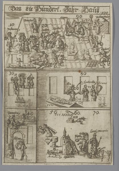 Editor: Here we have a 1658 engraving entitled "Comenius en leerlingen," or "Comenius and students." It's attributed to Anonymous and held at the Rijksmuseum. There's something almost pedagogical about it, yet strangely remote. What strikes you when you look at this piece? Curator: It’s a fascinating print, isn’t it? Given that it depicts Comenius, a hugely influential educator and religious figure, I immediately think about the context of 17th-century Dutch society. How was knowledge disseminated, and who had access to it? Notice how the image is framed; a portrait combined with genre scenes. It points to a desire to both elevate Comenius and situate his teachings within everyday life. Consider who this image might have been created for, and what message it conveys about social mobility and education at the time? Editor: I hadn't thought about it that way. The surrounding vignettes now seem to connect Comenius's intellectual world to real-world social dynamics. Curator: Exactly. We should ask: in what way is education tied to notions of social class? Are there elements within the piece that are actively trying to subvert it? Are these “genre scenes” idealised visions, or direct documentations of the life at the time? Considering this could further enrich our understanding. Editor: It's interesting how you've opened up the interpretation to include societal structures, not just individual portraiture. Curator: Ultimately, an image like this functions as a historical document that we can read through multiple lenses to gain deeper insight into power dynamics of the past. It pushes us to look critically at both who creates knowledge and how that knowledge is consumed by its audiences. Editor: This gives me so much to think about – about representation and the context of learning itself. Curator: Precisely. It urges us to ask deeper, critical questions regarding power, class, and representation in 17th-century Dutch society.