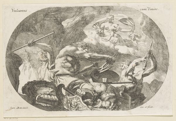 This etching, "Mod Almenvellet (71)," was created by Francisco de Goya, likely in the early 19th century. Its imagery emerges from the incisive technique of etching, where lines are bitten into a metal plate with acid, then inked and printed. The stark contrast between light and shadow, achieved through Goya’s manipulation of the etching process, emphasizes the grotesque figure at the center of the composition. This figure is hunched over a large book, with bat-like wings sprouting from its back, seemingly writing the laws of the land. Below, a crowd of figures appears to be suffering under its pronouncements. Consider the labor and skill involved in creating this image. Etching is an indirect process, demanding careful planning and execution. The corrosive action of acid on metal mirrors the destructive impact of the figure's actions on society, while the mechanical reproduction of prints allowed for wide dissemination of Goya's critical vision, challenging traditional boundaries between art and social commentary.