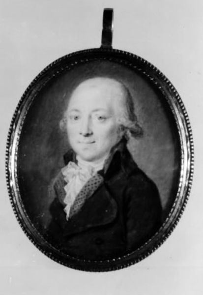 Editor: Standing before us is Alexander Roslin’s “Portrait of Charles Auguste Bourlet de Vauxelles,” created sometime between 1768 and 1772 using oil on canvas. The composition is dominated by an oval portrait, with the sitter looking directly at the viewer. It's such a striking image of a man in powdered wig and fashionable clothing, but what can you tell us about the historical context surrounding this portrait? Curator: It's intriguing, isn't it? Roslin was highly sought after as a portraitist among the European elite. This work reflects the visual language of power prevalent in the late 18th century. Think about the Rococo style, associated with luxury, aristocracy, and a certain… lightness. But does this portrait fit that mold entirely? Editor: Not exactly, the man seems somewhat serious despite his obviously wealthy garments. Curator: Exactly. Portraits during this period were vital tools for constructing identity and reinforcing social hierarchies. They weren't just likenesses; they were carefully constructed performances of status. Bourlet de Vauxelles clearly had the resources to commission such a portrait. But beyond that, what statement do you think he was trying to make about himself and his position within society? Editor: Perhaps he wanted to be remembered, not just for his wealth but for his character. Almost like a gentleman. Curator: Precisely! Think about the rise of Enlightenment ideals alongside the aristocratic culture. There was a tension – a desire for refinement but also a claim to reason and virtue. Consider too where these portraits were displayed – often in the sitter's private residences, used to reinforce their authority to guests, or sometimes in public exhibitions as symbols of cultural power. Editor: That’s fascinating, I never thought about them as such active tools. Curator: Well, the portrait serves as a reminder of the power dynamics embedded in art and its role in shaping how we perceive historical figures. Editor: This makes me reconsider what I assumed I knew about portraits in the past. I see how complex the narrative is that this portrait tells. Thanks so much for clarifying everything.