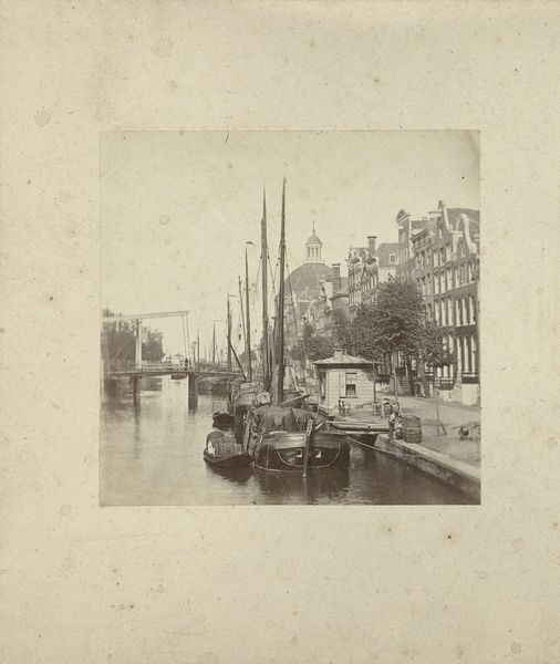 Editor: This photograph, titled "Gezicht over de Groenburgwal op de Zuiderkerk in Amsterdam," offers a captivating glimpse into the past. Captured around 1860-1875 using the gelatin-silver print method, its anonymous creation adds to the mystery. What elements of production or historical context particularly stand out to you? Curator: Given its date and the anonymous label, I think we need to acknowledge the labor conditions inherent in producing photographs like this at that time. There was often a whole ecosystem of darkroom assistants, printmakers, and retouchers whose labor went uncredited. How might their contributions shape our understanding of this image beyond the named artist or photographer? Editor: That's a really interesting point. I hadn't considered the studio system and division of labor involved. The focus tends to be on the "artist," neglecting all those other hands. How might thinking about those processes impact our interpretation? Curator: It directs us to question authorship itself and focus more on the physical qualities: the materiality of the gelatin-silver print, its replicability, the social dynamics that made such a cityscape possible to produce. Consider the access to materials, training, and even the leisure time needed to create this work. These weren't universally available, highlighting existing societal power structures. Does viewing it that way shift your understanding? Editor: Definitely. It makes me think about how the image participates in a system of representation – how it's not just a neutral record but embedded in specific socio-economic conditions. Seeing the image as an artifact of a whole industrial process, and not just the vision of an artist, is powerful. Curator: Exactly. It's less about celebrating individual genius, and more about acknowledging the complex web of production, labor, and ultimately consumption, that shapes even a seemingly straightforward photograph like this one. It's in those material processes that deeper meaning can be found. Editor: I’m starting to see a photograph like this is also the product of that labor and production environment, a piece of material culture of its time, that in itself is interesting and something that needs to be considered. Curator: Absolutely. And by understanding these historical production networks, we gain a more nuanced understanding of the final work and the society that produced it.