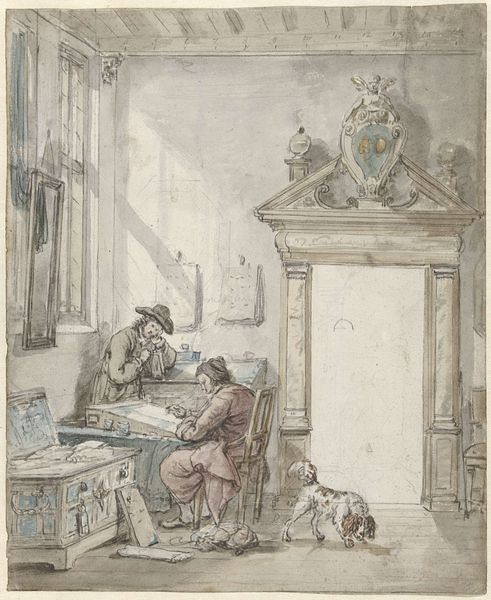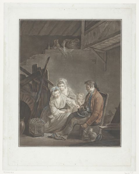 W. Barthautz created this watercolor titled 'Boy and Woman with Child in Front of a House'. Notice how the man stands with his hands clasped behind his back, a gesture found across centuries. This posture transcends mere idleness, echoing poses of contemplative figures in classical sculpture and Renaissance portraits. We find a similar stance in depictions of philosophers and statesmen, suggesting thoughtfulness or authority. Yet, in this domestic scene, its meaning shifts. The gesture may reflect the man's unease or deference, his body language a subtle negotiation within the family dynamic. Consider how such gestures become encoded in our collective memory, surfacing and evolving across time. This stance, laden with history, invites us to ponder the intricate interplay between personal emotion and cultural inheritance. It speaks to the enduring human drama that plays out within the simple settings of our lives.