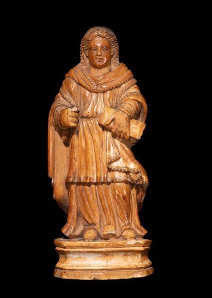 Editor: Here we have an intriguing piece! A baroque-style carving of Saint Anthony of Padua, made of ivory sometime in the 17th or 18th century. I’m struck by the gentle, almost tender expression on Saint Anthony’s face, especially considering it’s a sculpture. How would you interpret this work? Curator: Well, this sculpture really sings to me. Ivory, already imbued with its own quiet history and origins, adds a layer of depth, don’t you think? But what stands out for me is how it invites contemplation. Baroque art often goes big, dramatic – think sweeping gestures and bold statements. Yet here, we see an intimacy. There’s this sense of protection, of guidance being offered by Anthony towards the Christ Child and, metaphorically, towards us as viewers. Does the gaze connect to you? Editor: It does, actually. It's not just looking at you but also looking inward. So it’s not *just* about religious symbolism, is it? Curator: Exactly! The skill is amazing – carving such delicate features from ivory, making it come alive… it almost breathes. It goes beyond craft into a realm of emotional and spiritual resonance. But tell me, does the material impact the feeling it evokes for you? Editor: Definitely. The ivory gives it a sense of preciousness and antiquity, like a treasure passed down through generations. I hadn't fully appreciated how much the material could contribute. Curator: And isn't that the magic of art? To continually surprise, to offer a new layer of understanding each time you look. It's whispering stories that sometimes take time to fully unravel. Editor: Absolutely. It’s given me a completely different lens through which to view baroque sculpture. Curator: It all just adds depth to that whisper doesn't it?
