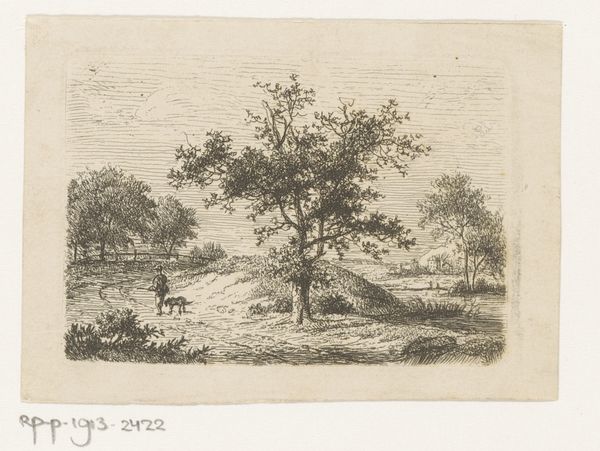This landscape, showing a road from Ghent to Brussels, was etched by Pierre François De Noter sometime in the early 19th century. An etching is made by drawing into a metal plate with a sharp needle, then covering the plate with acid. This bites away the exposed lines, leaving an image that can be inked and printed. What is special about the etching process is the fineness of line that can be achieved. Here, De Noter uses this to great effect, creating a scene that feels both detailed and atmospheric. Look closely, and you will see the rough texture of the paper, which softens the image. The image is almost a celebration of infrastructure. But the scene is also populated by working people— a reminder that even the most picturesque landscape is also a site of labor, of transit, and of economic activity. Considering the material process of the etching alongside the image, we are invited to consider the relationship between landscape, labor, and the development of modern society.