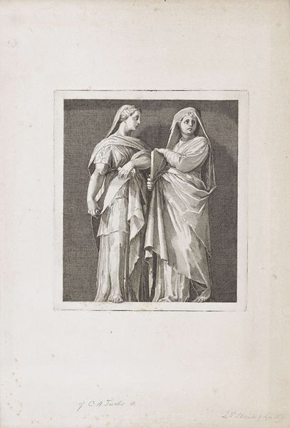Willem Frederik Wehmeyer made this print, ‘Mourning Women,’ sometime in the first half of the 19th century. It depicts women in classical robes grieving in front of a dark landscape. Wehmeyer was working at a time of burgeoning print culture in Europe, and this work reflects the influence of religious and historical painting, genres that often served to reinforce social and political norms. The women’s idealized features and flowing garments recall classical sculpture and Neoclassical painting, styles favored by the European academies that dominated the art world. The print’s somber tone and subject matter would have resonated with a public accustomed to seeing art in churches and state-sponsored museums that promoted piety and national identity. But Wehmeyer's print can also be seen as a more intimate expression of grief and loss. To understand Wehmeyer's position within the artistic and cultural landscape of his time, one might consult exhibition reviews, biographies, and other archival materials to trace the artist’s career and the reception of his work.