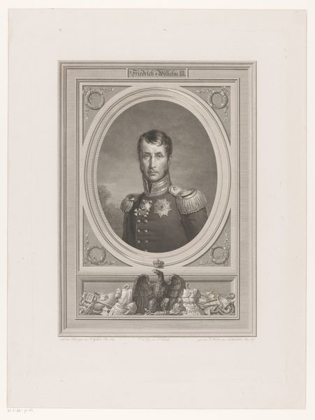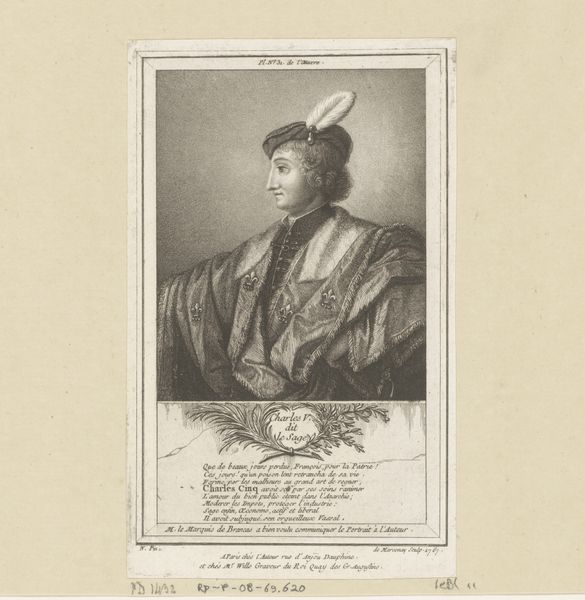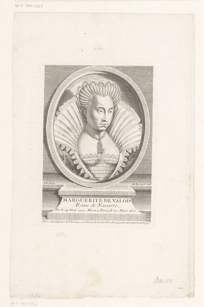 Pierre François Basan created this print, “Portret van Stefanus van Engeland,” or “Portrait of Stephen of England,” during the late eighteenth century, a time when printed portraits of historical figures were immensely popular. Consider the role of portraiture in shaping our understanding of historical figures, particularly monarchs. This image presents us with a regal Stephen, King of England, framed within a classical architectural surround. How does this framing affect our perception of Stephen's power and authority? The portrait is inscribed with Stephen's name and title, alongside the date of his death, immortalizing him through the medium of print. Prints like this were often included in books, or sold separately to be collected, which makes you wonder about the desires of the people who purchased them. What was it about these figures that fascinated people? Were they symbols of stability? Or were they romanticized reminders of a turbulent past?