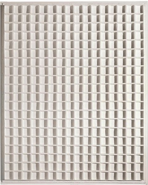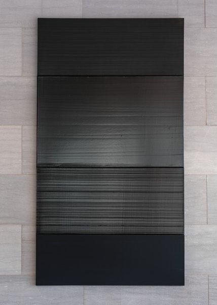 Curator: Welcome, everyone. We're standing before Julian Opie's "H," a metal sculpture crafted in 1987. It strikes me as rather austere. The cool metal, the rigid horizontals... almost industrial. Editor: It does exude a sense of calculated precision. But to me, those repeating lines also evoke musical staves, or perhaps lines of text awaiting inscription. It's minimalist, but loaded with latent potential meanings. Curator: It’s certainly an interesting commentary on industrial production. Opie is known for blurring boundaries between "high art" and industrial fabrication. How do the repetitive elements and factory-like materials influence you? Editor: They take me back to ancient architectural forms: the repetitive horizontal registers in Egyptian art, or even the entablature of a Greek temple. They symbolize order and continuity, and have, over time, suggested social hierarchy. Curator: That's an insightful point. The form resonates. There is also the visual rhythm created by the piece’s individual components; the repetitive use of machine-produced materials. This elevates industrial manufacturing into an almost meditative act. Does this layering add further symbolic weight? Editor: Definitely. Consider how we use lines to define space, boundaries. Each of those lines, perfectly parallel, presents a boundary. It speaks to the divisions in modern life, or it can reflect the layers of information we are forced to navigate. They carry complex and culturally conditioned emotional and psychological weight. Curator: It’s an intriguing notion; from its very creation as a series of identical machine-pressed elements, the artist has built a larger abstract narrative. To me this process mimics other means of serial mass-production and even consumerism. Editor: Precisely. It speaks to the very nature of symbols and their endurance; regardless of their creation process, those lines echo primal forms that persist through ages. It reminds me that our ability to interpret those symbols changes everything. Curator: An idea about symbols and production to ponder for our visitors, as they move to our next piece. Editor: Indeed. Thank you for considering the rich symbolism embedded even within a piece so seemingly simple and precise in its construct.