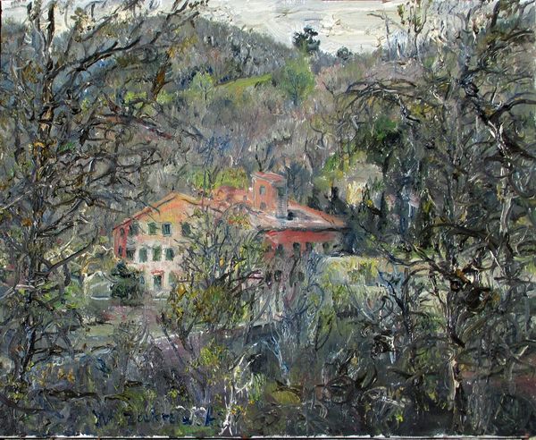 Hubertine Heijermans painted this watercolor of the House of the Dime near Ollon, a tax house in Canton Vaud. The house with its weathered facade and closed shutters, carries a certain symbolic weight, hinting at vigilance, secrets and possibly a quiet resistance. The act of closing and protecting spaces from the outside world appears in art across time, from Renaissance depictions of the Annunciation with Mary in enclosed gardens representing purity, to modern art where closed doors and windows may represent alienation. It is a motif that has evolved, shifting from sacred protection to psychological barriers. The act of collecting taxes in this scene reminds us of the biblical stories of tax collectors, often seen negatively, highlighting the tension between civic duty and personal gain. This contrast has echoes throughout art history, in Dutch Golden Age paintings showing merchants juxtaposed with moral allegories, each presenting a deep, subconscious exploration of wealth and ethics. The viewer is left to consider this building's history within this complex interplay of power, duty, and human nature.
