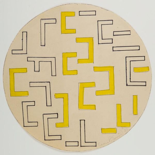 Editor: This is an Untitled piece by Leon Polk Smith from 1946, housed at the Harvard Art Museums. It looks like pencil on paper, with geometric shapes inside a circle. What do you see in this piece? Curator: I see the influence of the historical moment. In 1946, post-war society was grappling with new forms of order. The geometric shapes, contained yet dynamic, reflect that tension. Do you think the lack of color impacts its message? Editor: I hadn't thought of that. The monochrome palette seems to emphasize the structural elements rather than any emotional expression. I wonder if the artist intended a sense of detachment. Curator: Precisely. The public role of art shifted then. Artists explored abstract forms to comment on societal structures without direct representation. It makes you consider the role of museums in shaping these perceptions. Editor: I'm starting to see how even a seemingly simple drawing can be so deeply connected to its time. Thanks! Curator: My pleasure. It's fascinating how art reflects and shapes our understanding of history.