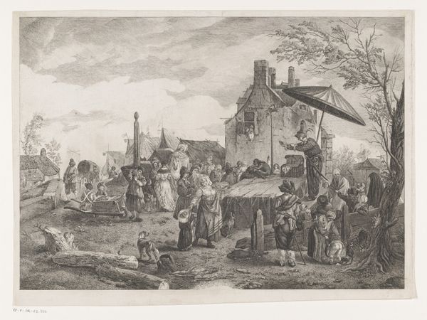 E. Blum's "Wintergezicht" presents us with a scene teeming with the iconography of daily life set against a medieval backdrop. The tower, a prominent symbol of civic strength and aspiration, looms over a frozen landscape animated by bustling figures. Observe how this architectural motif, reminiscent of a medieval stronghold, echoes through time. It is not unlike the ziggurats of ancient Mesopotamia, symbols of humanity's endeavor to reach the heavens. Here, the bridge is not merely a path over water, but a symbolic connector, reminiscent of the Roman aqueducts that carried life-giving water across vast distances. The winter setting itself, with the bare tree, carries a profound psychological weight, evoking themes of dormancy and resilience, reflecting humanity's cyclical dance with nature and time. The figures on the ice evoke the cyclical nature of life, and the persistence of human endeavor, a continuous re-emergence of archetypes that engage us on a subconscious level.