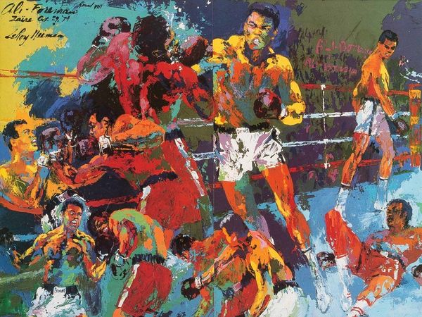 LeRoy Neiman painted Mixed Doubles with oil to capture the energy of a tennis match. The colours are vibrant, and the marks are put down wet-on-wet. It's all about the moment of application, creating something immediate. The texture is key here. The paint is thick, and you can almost feel the bristles of the brush as Neiman created a kind of controlled chaos. Look at the way he suggests the tennis net with broken lines and daubs of colour. It's not about perfect representation but about capturing the essence of the game, the movement, and the excitement. I see echoes of Matisse here, maybe even a touch of Diebenkorn. But Neiman has his own thing going on, a kind of jazzy abstraction that makes you want to pick up a racket and swing. Ultimately, this is what good art does; it doesn’t just show you something, it makes you feel it too.