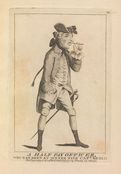 This print, "A Choice Spirit," was created by George Murgatroyd Woodward. The figure's foppish attire, from the powdered wig to the buckled shoes, speaks of the era's obsession with appearances. The man's self-satisfied smirk and hand placed suggestively on his stomach are more than mere portraiture; these are gestures laden with meaning. Observe how, throughout history, similar poses recur in art and theatre, each time carrying connotations of arrogance or indulgence. Think of the Roman emperors depicted with similar swagger, or even the stock characters in commedia dell'arte. The gesture, passed down through the ages, accumulates layers of meaning. There is something deeply human, even primal, about our fascination with such displays of confidence, perhaps born from a subconscious desire to emulate such power. This image is not just a snapshot of a moment, but a reflection of how collective memory shapes our understanding of human behavior.