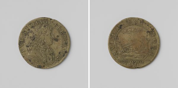 Curator: This medal commemorates the birth of a hereditary prince, the future William V, in 1748, crafted by Martin Holtzhey. Editor: Oh, it’s quite beautiful! Such a tiny world of baroque extravagance… It gives me a peculiar, almost dreamlike feeling. All that power compressed into something you could hold in your hand! Curator: Indeed. It exemplifies the era's symbolic language. The conjoined portraits on the obverse are William IV and Anna of Hanover, the parents of the newborn prince. Editor: And I see what looks like a celestial being, perhaps an angel or winged goddess, cradling a baby above, emanating a radiant light…It reminds me a bit of those baroque sculptures where you find ecstasy frozen in stone. Curator: Precisely. That scene depicts Providence bestowing the newborn William V upon the Dutch Republic, with rays of divine favor emanating from them. Consider the reverse—the message conveyed celebrates continuity and destiny. The visual symbolism of inheritance and divinely ordained rule is striking. Editor: Thinking about it now, this medal feels…optimistic. Or perhaps propagandistic? I’m curious, who would carry such a medal? Curator: Medals like these were often distributed amongst dignitaries and people connected with the court, functioning as keepsakes that circulated the political message of the new heir. It also signifies continuity in this instance because that period knew instability and the stadtholder position became hereditary at that exact moment. Editor: In terms of craftsmanship, the level of detail is truly impressive, particularly given the limitations of working on such a miniature scale. It has a tactile feel; imagine how worn it would have become carrying a potent little emblem of power around. I’m seeing it, now… It really comes alive. Curator: Exactly. The artist, Holtzhey, skillfully employed metal to articulate dynastic ambitions through symbolic allegory. Looking closely, the baroque style comes across through its dense compositions, detailed surfaces and symbolic program. It is definitely one of a kind! Editor: Medals, miniature yet somehow grandiose! It almost feels a bit quaint now, doesn’t it? Curator: It really does capture the spirit of that era’s faith in symbolic messaging, its aspirations and its way of celebrating momentous occasions, indeed.