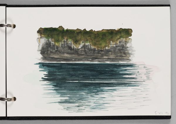 Curator: Welcome. Before us we have Elena Prentice’s delicate watercolor, *Landscape, Maine*. Editor: There's a deceptive stillness here. At first, it seems straightforward, even simple. Curator: Indeed. Prentice captures the essence of the Maine coastline with just a few horizontal brushstrokes. Note the muted grays and blues. Editor: Those bands of color aren't just representational; they're almost abstract. I'm struck by how the reflections seem more substantial than the landscape itself. What is the real, and what is simply the trace? Curator: Perhaps Prentice is suggesting that our perceptions shape our reality. That the memory of a place becomes as important as the place itself. Editor: Well, that's certainly given me pause. There's more to this little landscape than initially meets the eye.