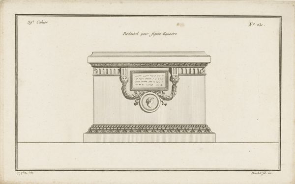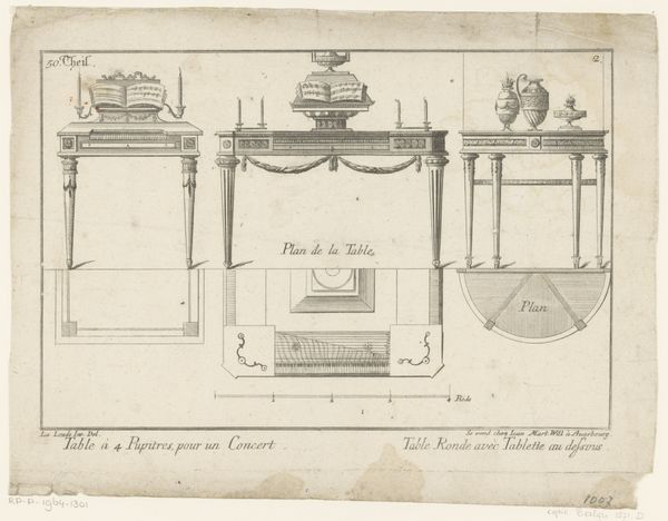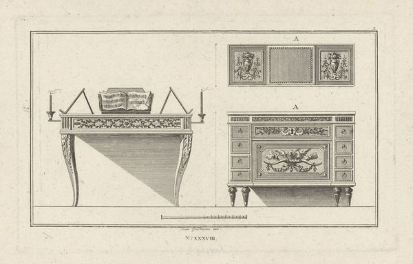 Pierre Claude Delagardette created this drawing, “Details van ornamenten van een bank,” in the late 18th century. Delagardette’s work provides us with insight into the opulent designs favored by the French aristocracy, a class that wielded considerable cultural and political power. This drawing meticulously details the ornamental elements of a bank or bench. The intricate carvings, floral motifs, and classical references speak to a desire for luxury and refinement. During this period, furniture was not merely functional; it served as a status symbol, reflecting the wealth and taste of its owner. The "confident" aspect mentioned in the drawing's title hints at the intimate conversations and social rituals that would have taken place on such a piece of furniture. Ultimately, this work serves as a window into the lives and values of the elite during a time of great social and political change, capturing a fleeting moment of luxury before the French Revolution.