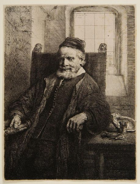 This is Peter Ilsted’s etching of his father, Jens Peter Ilsted. Note the man’s serene posture: seated, hand resting gently, a composition echoed across centuries. This gesture, one of contemplation and authority, appears in Roman portraiture and Renaissance depictions of scholars and saints alike, each reinforcing a lineage of wisdom and paternal power. Even the books on the table behind him, a quiet symbol of knowledge, are reminiscent of scholarly depictions throughout art history. Consider the symbolic weight of fatherhood. It is interesting to see how Ilsted subtly nods to these established visual traditions. These symbols touch upon our own subconscious associations of wisdom, authority and lineage. It is an emotional tableau which has, and will continue to engage viewers.
