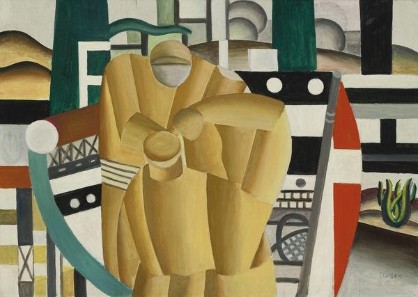 Fernand Léger made this painting, called *Le Damier jaune*, with oil on canvas sometime in the early 20th century, and right away, you notice how he is playing with shapes and colors like they're building blocks. The whole process feels like an experiment, piecing together an image from geometric forms. Looking closer, you can see how Léger layers the paint, sometimes thick, sometimes thin, creating a push-and-pull effect on the canvas. The texture is smooth, which is interesting considering his subject matter. Take that yellow and black checkered plane, for example. How does it relate to everything else that is going on in the image? It looks like a game board, something that is in motion. That idea is interesting. Léger was part of a movement called Cubism, where artists like Picasso and Braque were breaking down objects into fragments. Thinking about Leger’s work, I wonder if he ever saw any Stuart Davis. I see their shared interest in the geometry of everyday objects. For both, art isn't about copying reality but creating new ways of seeing and experiencing it.