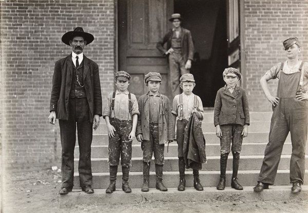 Curator: Here we have Lewis Hine’s photograph, "Coal Miners." Editor: My first thought is the starkness of the composition, the way the faces emerge from the dark tones. Curator: Hine’s work often served as a powerful tool for social reform. In this photograph, he captures the faces of laborers, their identities intertwined with the arduous work they perform. Editor: Yes, and the lighting emphasizes the texture of their clothing and the lamps on their heads, creating a study in contrasts. Curator: Consider the historical context—the rise of industrialization, the exploitation of workers. Hine sheds light on the human cost behind progress. Editor: The somber tonality reinforces this message and the subjects' expressions also contribute to this reading. Curator: Indeed. Hine's approach compels us to confront uncomfortable truths about labor, class, and power. Editor: Seeing how the composition draws your eyes to the center figure, it definitely encourages closer inspection. Curator: Precisely, and looking more closely allows us to question the very systems that perpetuate these inequalities. Editor: A powerful reminder of art's ability to capture both form and the weight of social realities.