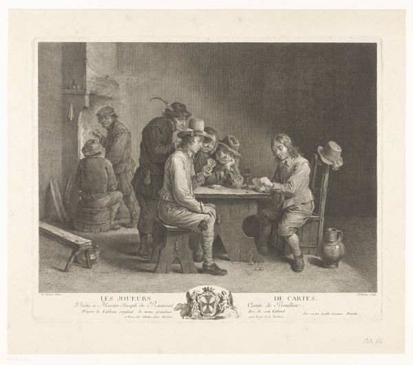 Alexander Ver Huell made this print called ‘Man en Vrouwen aan Tafel’ using etching. It's now in the Rijksmuseum collection. This image, titled ‘The Cookbook’, is a window into 19th-century Dutch domestic life, reflecting the social roles and expectations of men and women. The etching, with its detailed interior, suggests a rising middle class, keen to display their status through household management. Ver Huell presents a satirical commentary on gender dynamics. The man, animated and assertive, seems to be instructing the woman, perhaps about household management or accounting, while another figure sleeps, oblivious to it all. This could critique the patriarchal norms of the time, where men dictated domestic affairs. To fully grasp the image, one could look into the popular print culture of the Netherlands at the time. What role did humour play in social commentary? How did institutions like the art market and the press shape the production and reception of such images? These are vital questions to ask when looking at such artworks.
