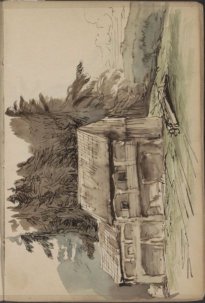 Curator: Let’s consider this understated drawing by Barend Hendrik Thier. It's titled "Walled building and a landscape with windmill" and thought to be from around 1780 to 1800. Editor: Immediately, I notice a split composition; the stark architectural forms versus the natural setting with the windmill seem disconnected, even alienating. There’s a ghostly, unfinished quality. Curator: Precisely, and it speaks to Thier’s position within late 18th-century art. While we see the Neoclassical fascination with idealized forms in the upper portion depicting architectural ruins, the looser lines of the lower landscape nod to Romanticism. Editor: It's interesting how the upper image seems to oppress or overshadow the lower pastoral image. In what kind of institutional and public environments would these drawings have been consumed? It looks to me as if nature is fighting with artifice and ultimately not succeeding. Curator: Thier likely made this as a study, as part of his broader practice, as opposed to a finished exhibition piece. Remember, art at this time was largely commissioned, supporting aristocratic or increasingly, bourgeois tastes, dictating that these architectural studies of stately buildings serve to project ideals of order and permanence during turbulent political times. Editor: Right. Even the medium – a muted wash – is a form of erasure or muting of color. There is nothing vibrant or lively, only grays that drain this of any sense of freedom or beauty. It suggests the controlling nature of the Neoclassical gaze upon the Dutch landscape and perhaps it symbolizes the way powerful Dutch architectural patrons asserted dominance. Curator: Your reading resonates well within current academic thought. The drawing underscores that artistic expression during the Neoclassical period wasn't simply about aesthetic preferences, it actively participated in shaping and reinforcing specific social structures and political ideologies. Editor: Considering the context, what struck me as initially unsettling now reads as deliberately bleak. Curator: I agree. What seemed at first a somewhat disconnected exercise in representation now appears loaded with intention. Thanks for these interpretive considerations, your points broaden the horizons of our listeners.