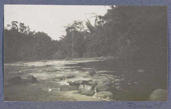 Hendrik Herman van den Berg created this small photograph, titled "Gezicht op een meer," which translates to "View of a Lake." Van den Berg, born in the Netherlands in 1875, lived through a time of significant social and political change, including the two World Wars. While the specifics of this photograph's date are unknown, its subject matter – a tranquil lake surrounded by lush trees – evokes a sense of peace and quietude, perhaps offering an escape from the turmoil of the era. The photograph is rendered in muted tones, which contributes to its dreamlike quality. The water’s surface reflects the surrounding foliage, blurring the line between reality and reflection. This dreamy effect might invite us to meditate on the complex relationship between nature, memory, and identity. What do you see reflected in this still, quiet lake? What aspects of yourself?