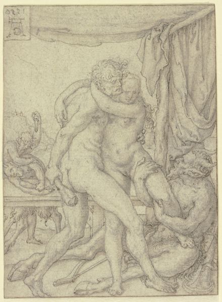 Editor: So, this is "Hercules and Nessus," an engraving by Marcantonio Raimondi, dating from around 1504 to 1509. The energy is intense, you can really feel Hercules' anger, right? I mean, what is your interpretation of this piece? Curator: Well, seen through a historical lens, engravings like this one played a crucial role in disseminating classical stories and artistic styles across Europe. The figure of Hercules, particularly, carried immense political weight. Think about the patrons and collectors who would have seen this. Who were they trying to emulate? Editor: Kings? Emperors? I see Hercules about to strike Nessus here. He’s avenging Deianira… Did they view themselves as these heroic figures bringing order, crushing their rivals? Curator: Precisely. The image normalizes power, and superior male dominance, which is visually aligned with how the patriarchy operated and projected power in those days. Notice also the artist's use of line to create the muscularity and drama, really emphasizing the hero’s idealized body, which also carried social messages. How do you see it functioning within, say, the court of Francis I, who was known to commission and collect similar works? Editor: I guess in that context, it serves almost as propaganda. A reminder of the King's strength and authority and righteousness. Curator: Exactly. The print’s dissemination becomes a political act. It shaped how people understood power and justified social hierarchies, especially with easy access given the print form. It makes me wonder about the modern echoes of these representations today... What have you gleaned from it all? Editor: How the art is viewed differs in meaning depending on context, such as now seeing engravings as early forms of accessible reproductions of a very political era! Thanks. Curator: A critical interpretation that re-contextualizes classical representation of heroic figure. Very insightful, well done.