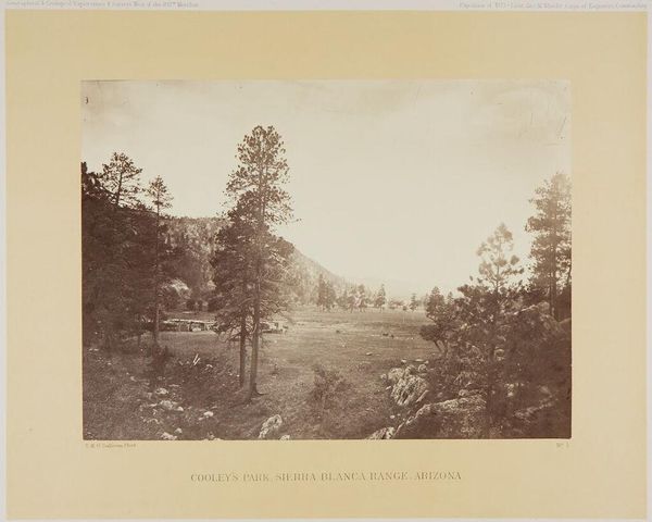 Curator: Here we have Timothy O'Sullivan's "Apache Lake, Sierra Blanca Range, Arizona," a photograph that captures a seemingly untouched landscape. Editor: It feels dreamlike, doesn't it? A hazy memory almost, softened by time and light. Curator: O'Sullivan was part of a survey expedition, tasked with documenting the American West. His work was often funded by the government to promote westward expansion. Editor: So, it's not just art, it's also propaganda? The way the light filters through the trees, it's like painting with light, but with a political agenda. Curator: Exactly. His photographs played a crucial role in shaping perceptions and policies related to land use and resource extraction in the West. Think about the material impact of those images. Editor: It’s a bit unsettling to think of something so beautiful being tied to such a complex history. But perhaps that's what makes it so compelling. Curator: Indeed. It prompts us to consider the role of photography, art, and the stories they tell in shaping our world. Editor: A potent reminder that even the most serene image can hold layers of history.