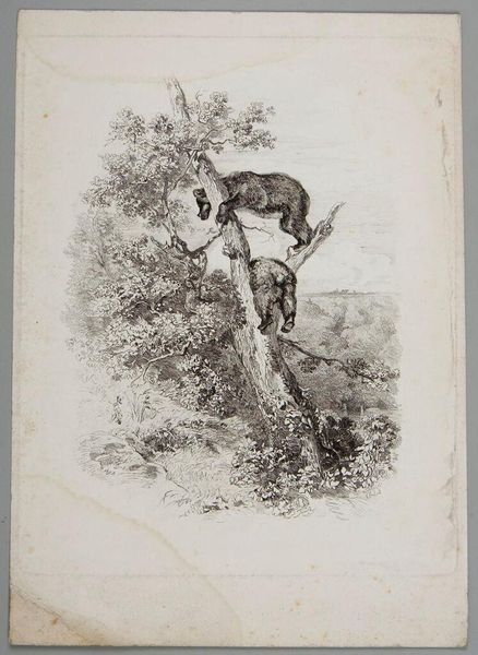 Curator: Immediately, I'm struck by the vulnerability in this image. The duck, a classic symbol of adaptability, here seems so fragile, so delicately balanced on one leg. Editor: This is Karl Bodmer’s "Duck Standing on One Leg," currently housed in the Harvard Art Museums. It's a small plate, about 14.5 by 21.5 cm, and the medium appears to be etching. Curator: Absolutely. The single leg mirrors a sense of precariousness. Ducks are creatures of the water and the sky, yet here it seems momentarily grounded, almost questioning its place. What narratives do such images create around our relationship with nature? Editor: Well, in Bodmer’s time, images of the natural world played a critical role in scientific documentation and public education. This duck, then, isn't just about emotional resonance; it's about observation, classification, and asserting a particular human-centric view of the environment. Curator: A fascinating point. So even in its seeming simplicity, this image participates in broader systems of understanding the natural world. Editor: Precisely. It reminds us of how art always exists within a social and scientific context, shaping our perceptions in subtle but powerful ways.