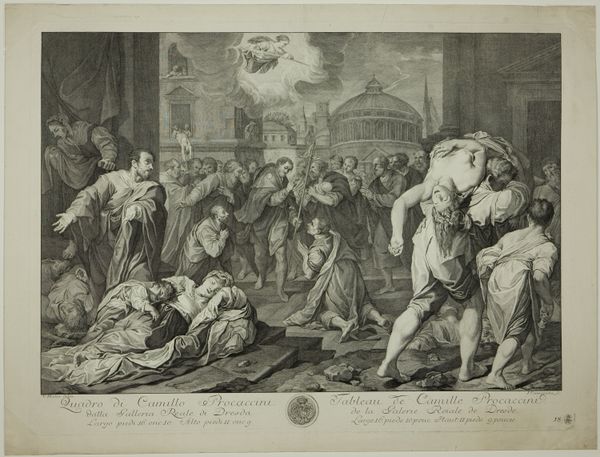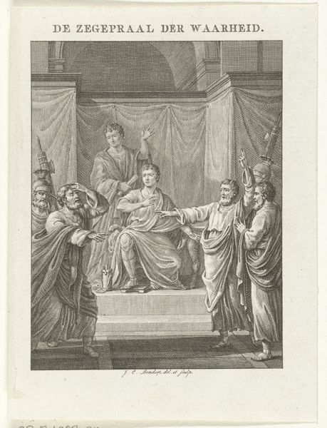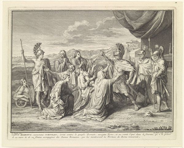 Domenico Cunego created this engraving, titled 'Achilles boos over het verlies van Briseïs,' using an unknown printing technique. It depicts a scene from Homer's Iliad, resonating with the 18th-century's fascination with classical antiquity. Made in Italy, this work evokes a renewed interest in Greek and Roman culture. The grandeur of the scene, with its emphasis on heroic emotion, aligns with the Neoclassical ideals prevalent at the time. Italy, then a hub of artistic exchange, saw the rise of academies and institutions that shaped artistic production and tastes. Cunego's print serves as a window into the past, a time when art was deeply intertwined with social and institutional contexts. Researching the Royal Noort and Vincent Collection would shed further light on the reception and significance of such works in their time. Art like this reveals the social conditions that shape artistic production and our understanding of history.