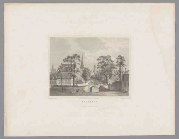 Editor: This is Louis-Julien Jacottet's 1838 engraving, "View of the Pére Lachaise Cemetery in Paris," a print that captures an incredible sense of depth. What strikes me most is how the receding lines draw the eye into the heart of the cemetery itself. How do you interpret this work from a formal perspective? Curator: Indeed, the strength of this engraving lies in its masterful deployment of linear perspective. Observe how Jacottet utilizes orthogonals converging towards a vanishing point on the horizon, creating a rigorous illusion of space. This compositional technique invites the viewer to visually traverse the cemetery's expanse. Note also the use of varied line weights. Editor: Yes, I see how the darker, more pronounced lines in the foreground give way to finer, more delicate strokes as the eye moves towards the background. How does that relate to the formal qualities you’ve mentioned? Curator: Precisely. This strategic shift in line density serves to enhance the illusion of atmospheric perspective. The subtle tonal gradations create a sense of aerial depth, subtly blurring the distant monuments, conveying a sense of vastness and, perhaps, the ineffable nature of what lies beyond. Do you perceive any disruptions in the patterns established by this systematic layering? Editor: Now that you mention it, the figures near the wall feel… detached somehow, they seem less defined. Is this deliberate, or is it a byproduct of the technique itself? Curator: That perceived disjunction, while subtle, contributes to the engraving’s overall tension. It can be argued that it mirrors a psychological detachment—the living juxtaposed with the meticulously rendered domain of the deceased. It highlights an interesting comparison of lines representing human figures to that representing the graveyard in general. Editor: That's fascinating, I hadn’t considered that the texture plays such a role in meaning. Thank you for helping me understand this work. Curator: My pleasure, I was equally rewarded to unpack these aspects while discussing it.