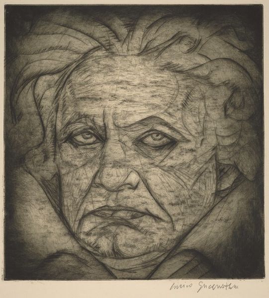Philip Akkerman made this self-portrait in 1998, it’s number 95 in a series, using, what looks like, pen on paper. You can tell Akkerman has really embraced the act of looking and mark-making as a process of figuring things out. I love how the whole image is built from these tight, almost topographic lines, giving the face a strange, sculptural quality. Look at how the lines around the eyes and mouth create depth, while the hair becomes this swirling mass of texture. The way the light radiates out from the head is mesmerizing, like he’s trying to capture not just an image, but an emanation, or a vibe. The marks are so controlled, yet the overall effect is almost feverish. It reminds me of the obsessive quality you see in the work of some outsider artists, like Adolf Wölfli, who are driven by some inner need to create their own worlds. Akkerman's commitment to the self-portrait, his willingness to keep digging into the same subject, is, for me, a real testament to the power of art as a way of knowing.