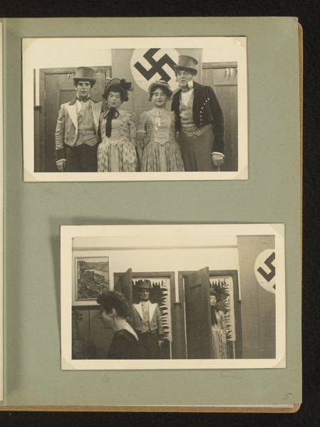 This photograph, part of the Estate of Isabel Wachenheimer, presents a chilling tableau. The stark black and white tones lend it a sense of historical weight and foreboding. Consider the composition. The figures are rigidly posed, arranged in neat rows that create a sense of order and control, yet the swastika looms large behind them, disrupting any pretense of normalcy. It's a visual signifier, loaded with meaning, dominating and dictating the scene's interpretation. The portrait adds another layer, a face representing authority, carefully positioned as the focal point. The photograph isn't just a record; it's a constructed image, designed to convey power, unity, and ideology. This image serves not only as documentation but also as a chilling example of how photography can be used to normalize the most destructive forces. It reminds us that visual forms always participate in larger structures of meaning.