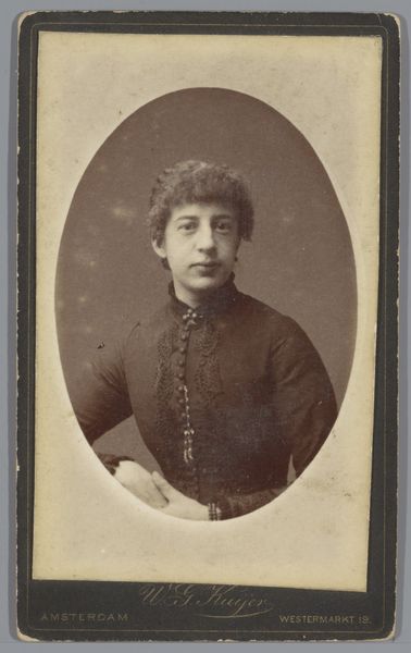 This is a photographic portrait of an unknown woman by Johannes Leonardus van der Heijden. The sepia tone and the subject's formal attire give us the impression of a bygone era. The composition is structured around the oval frame that encases the woman. The subject is centered, drawing our attention to her gaze and the details of her clothing. The choice of sepia tones unifies the image, creating a sense of harmony. The texture of the photograph is smooth, with the subtle grain adding depth. It would be a mistake to consider the structural elements of the image in isolation from the semiotic codes of its time. For instance, the woman's clothing and hairstyle signify her social status. The symmetry and balance of the composition speak to a desire for order and control, reflecting the values of the period. The photograph's form, therefore, becomes a vessel through which cultural meanings are both conveyed and constructed. The portrait's formal qualities interact with the social and cultural codes of the time.