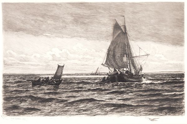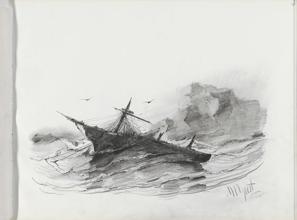 Eugène Isabey created 'Return to the Port' using graphite on paper. These are traditional materials, but the way Isabey coaxes them to describe the scene is quite remarkable. The drama of the scene is intensified by the artist's skilled handling of the graphite, creating a range of tones and textures that evoke the turbulent sea and the fragility of the vessels. The pencil marks are delicate yet powerful, capturing the rough nature of the sea, the volume of the clouds and the sheer weight of the water. Look closely at the way Isabey uses light and shadow to emphasize the waves crashing against the boats, filled with sailors, their bodies rendered with a raw, expressive energy. The intense labor of the sailors is evident; a reminder of the human effort that underlies maritime trade and travel. Isabey’s focus on the material realities of seafaring life, and the working people within it, bridges the gap between fine art and the everyday.
