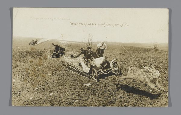 Editor: So this photograph, "Duitse soldaten helpen met hooien" or "German Soldiers Helping with Haymaking", is a photograph taken sometime between 1940 and 1946, now held at the Rijksmuseum. What strikes me is the unexpected juxtaposition of wartime soldiers engaging in what seems like ordinary farm labor. How does the context of its production shape its meaning? Curator: For me, the photograph compels us to consider the means of production and labor during wartime. Notice the agricultural equipment. Its materials, its manufacturing - these all speak to a specific moment in industrial history, one inevitably intertwined with the demands of war. How do you think the labor depicted here challenges conventional notions of wartime activity? Editor: I suppose we usually think of soldiers engaged in combat, not agriculture. This feels staged somehow, almost like propaganda? Curator: Exactly. Consider the image itself as a constructed object. The photographic materials, the developing process – these were all carefully controlled. Whose narrative is being privileged? The image highlights labor in a period where materials were scarce and carefully allocated for both war and agricultural output, presenting labor and the control over resources as crucial themes. Could this be interpreted as a deliberate blurring of the lines between occupation and cooperation through carefully orchestrated acts of labor? Editor: That’s a really interesting point. It makes you wonder about the unseen hands involved in creating and distributing this image. Curator: Indeed. The distribution channels, the intended audience - these all play into understanding the photograph’s meaning as a material object shaped by social and political forces. What I'm taking away from this image, I suppose, is a deeper understanding of production beyond factories, including agricultural production, and the narrative and labor it communicates. Editor: This conversation’s made me realize the photograph is not just about what's depicted, but about how it was made, used, and what that suggests about resource allocation during the war.