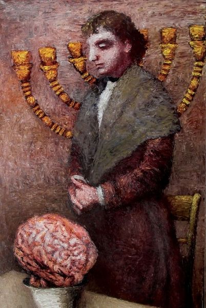 Alexander Roitburd painted this portrait of Korovin, the Russian Impressionist, maybe sometime around 2006 using oils. Roitburd's got this great way of laying down paint, so thick and juicy. Like a cake decorator, but instead of frosting, it's vibrant color, like the dollops on the palette Korovin holds. You can almost feel the heft of the paint, the way it catches the light, creating these little peaks and valleys. Check out the background – that swirling, abstract space behind Korovin. It's a mix of blues and greens, with these little dabs of yellow that could be flowers or just pure, unadulterated light. It’s hard to say what’s going on, but it gives it a totally dreamy feeling. This reminds me of some of Guston's later works, the way he embraced this kind of chunky, almost cartoonish style. It’s like they're both saying, "Hey, painting can be messy and imperfect, and that's okay!"