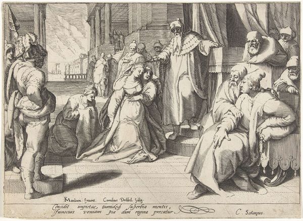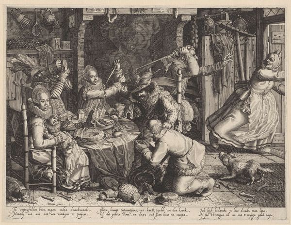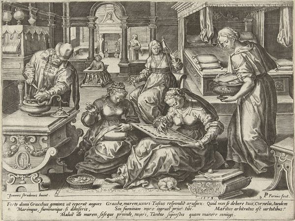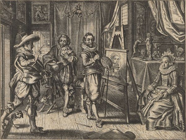 Christiaan Le Blon’s etching, "Two Women Undressing a Man," depicts a peculiar scene that invites speculation about the social dynamics of its time. The composition immediately draws us into a gathering of formally dressed figures, their expressions a mix of amusement and intrigue as two women playfully disrobe a man. Made in the Netherlands, likely in the 17th century, this image reflects a society grappling with emerging bourgeois values and shifting social mores. The act of undressing, laden with erotic undertones, prompts questions about gender roles and social boundaries within the Dutch Golden Age. Are we witnessing a harmless game or something more transgressive? The theatrical setting and the participants’ elaborate attire hint at a staged performance, perhaps intended for private entertainment among the wealthy. Further research into the social rituals and leisure activities of the Dutch elite would shed more light on this fascinating artwork. It reminds us that art is deeply embedded in its social and institutional context.