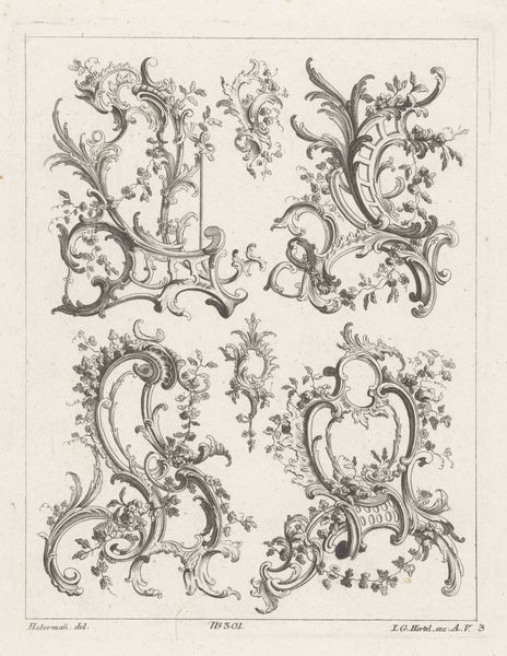 This ornamented letter F, featuring an allegorical figure, was created by Isaac Weissenbruch, likely in the late 19th century, using etching or engraving techniques on paper. The intricate details of the letter, adorned with shells, foliage, and a merman-like figure, showcase the skill required in traditional printmaking. Notice the lines, meticulously etched or engraved, giving form and texture to the composition. The allegorical figure and flowing water motifs suggest a connection to classical art and mythology. The production of such prints involved specialized tools, skilled labor, and established workshops. These processes reflect the intersection of artistic creativity and commercial enterprise. Printmaking played a vital role in disseminating imagery and knowledge during this period. Ultimately, this ornamented letter reminds us of the labor and artistry involved in producing images that were once integral to visual culture, blurring the lines between fine art, craft, and commerce.