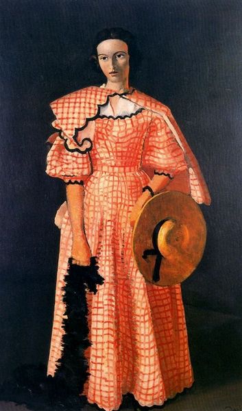 Curator: Looking at this portrait, the thing that strikes me immediately is the rendering of the fabric of the skirt—it's luminous! Editor: Indeed! We are observing Georges de la Tour's "Old Woman" painted circa 1619 using oil paint. Curator: La Tour's attention to line is certainly present, directing our sight throughout the canvas. Her headdress creates a strong focal point leading us down to the dark blues and then to the voluminous material that reflects an internal light of sorts. Editor: Considering the medium and subject, I'm thinking about the cost of the pigment. Blues especially would have been significant. One has to wonder who paid for this—did the artist provide her clothing or was it the sitter's? We also see, even given the limited palette, subtle variations in shade—laborious to grind and mix, I am sure! Curator: The composition is quite compelling. Her facial expression gives very little away but implies lived experiences, hinting perhaps at social critiques—while the lighting focuses primarily on structural features in the rendering of this striking garment. Editor: I’d argue that de la Tour is challenging conventions through the representation of this older working-class woman, elevating her in status. Look at the almost theatrical presentation. And the choice of oil paint itself is no accident—a medium closely linked to elite artistic traditions. I can almost feel the weight of the fabric and her laborious efforts in managing it. Curator: I do concede it’s interesting that de la Tour opted for this older female subject, rather than the classical subjects prevalent at the time. Still, when I consider this piece, I think more on the use of shadow, the tonality and how La Tour expertly frames her face using a simple combination of line, texture and limited palette. Editor: Well, thinking about "Old Woman" as a whole—the artistic techniques, the deliberate choices regarding materials, it provides valuable insight into social realities and artistic innovation in 17th century France. Curator: Yes, I will agree. And the geometry adds another layer of compositional significance.