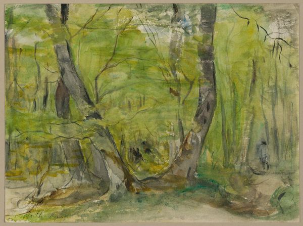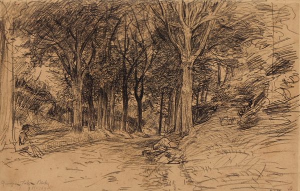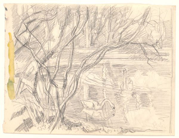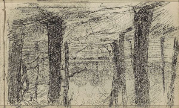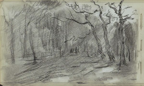 Editor: Here we have Johan Antonie de Jonge's pencil drawing, "Bosgezicht," created sometime between 1884 and 1927. It depicts a forest scene, a landscape in a realist style. It’s so gestural, almost like a fleeting impression, despite the natural subject matter. What do you see in this piece in terms of its historical context? Curator: I see this drawing as deeply embedded in the cultural shifts concerning landscape representation during that period. By the late 19th century, there was growing tension between academic painting, which presented idealized scenes, and a more democratic approach where everyday experience took precedence. Consider how the drawing captures an un-staged natural scene – a move away from the sublime landscapes often commissioned by elite patrons. Do you notice how the medium contributes to this effect? Editor: Definitely. The pencil sketch quality makes it feel immediate and personal, more like a study than a finished artwork intended for public display. Curator: Exactly! It raises questions about the evolving role of the artist and the art market. Was this meant as a preparatory study, or did it function as an artwork of its own, reflecting perhaps a change in how art was being circulated and appreciated beyond official channels? Think about independent exhibitions and the rise of smaller galleries. Editor: So, the drawing style reflects the democratizing shift within art institutions themselves, where sketches are accepted and praised rather than simply dismissed as preliminary works? Curator: Precisely. The sketch invites a different kind of viewership. How does seeing it in a museum today alter your understanding of the artist’s intention, given its seeming intimacy? Editor: It makes you wonder who it was originally intended for, and how its meaning has shifted as it's moved into a public space. Curator: Absolutely. A piece like this illuminates the journey art takes from private inspiration to public consumption and how that shapes its evolving value and story. Editor: This has really highlighted how an apparently simple landscape sketch can hold such complex social and institutional narratives.